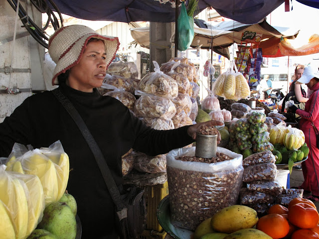Dzisiaj dotarlismy do stolicy Kambodzy czyli Phnom Penh. Podroz z Siem Reap nie byla latwa. Zdecydowalismy sie na autobus, ktory wiozl nas w tumanach kurzu przez khmerskie wioski. Wyruszylismy po sniadaniu, dotarlismy tuz przed zmierzchem. Widokow po drodze chyba nie da sie opisac. Mijalismy wioski bez pradu, tutaj wiekszosc domkow jest zbudowana z drewna badz z materialow, ktore po prostu udalo sie zdobyc. Duza czesc z nich stoi na palach. Przy drodze, miejscami pozbawionej asfaltu, stoja sprzedawcy ze swoimi straganami. Na jednym z przystankow kupujemy swieze pokrojone mango. Na stoisku obok leza w miskach smazone tarantule... Z ich skosztowania rezygnujemy :-) Kiedy kierowca autobusu wyklada nasze plecaki z bagaznika pokryte sa one gruba warstwa kurzu. Tuk-tukiem dojezdzamy do hostelu i bardzo glodni od razu idziemy cos zjesc. Nieopodal w knajpkach siedza sami lokalni mieszkancy, takie miejsca lubimy najbardziej :-) To w nich mozna zasmakowac prawdziwej miejscowej kuchni. Jestesmy jedynymi turystami, wiec podchodzi do nas wlasciciel, wiekowy juz khmer. Okazuje sie, ze nie mowi po angielsku, nie ma rowniez anglojezycznej karty. Hm...menu nie ma w ogole. Na migi pokazujemy piwo, nastepnie zaprowadzeni zostajemy pod tablice ze zdjeciami dan, ktore oczywiscie maja jedynie opisy w tutejszym jezyku. Ciezko w ogole nawet ze zdjec zrozumiec, co to za dania. Znowu wybieramy na migi. Dostajemy 2 rozne dania, oba z ryzu z warzywami. Jedno ze smazona kielbaska, drugie z wolowina. Bardzo nam smakuja. Przy stolikach obok mieszkancy miasta jedza z kociolkow, ktore stoja na srodku stolu i sa caly czas podgrzewane. Takie wspolne gotowanie dania. Wyglada to naprawde apetycznie. Niestety, my nie potrafimy okreslic, co to sa za dania i jak je zamowic :-) Pan Khmer jest bardzo uprzejmy, caly czas doglada naszego stolika, smieje sie czasem, pewnie jemy tutejsze dania w zupelnie niewlasciwy sposob :-) Placimy za 4osobowa kolacje z piwem 17 dolarow. No wlasnie...tutaj ceny w restauracjach sa naprawde bardzo niskie. Gdy jestem gdzies w podrozy w Europie czesto zastanawiam sie, co ile kosztuje i czy mnie na to stac. Tutaj zywimy sie w knajpkach, ktore z pewnoscia nie maja standardow europejskich (czytaj: czystosc, sposob podania, wystroj wnetrza). Czasem sa to po prostu garaze przerobione na jadlodajnie, czasem plastikowe stoliki wystawione na chodnik. Ale to wlasnie to jedzenie jest tym, jakie jedza lokalni mieszkancy. I pewnie tego klimatu i tych smakow nie spotka sie w drogich restauracjach, ktore tutaj tez istnieja i w ktorych jadaja bogatsi turysci. Takie to wlasnie uroki khmerskiej kuchni mozna znalezc podczas niskobudzetowych podrozy :-) Jutro zwiedzamy Phnom Penh i smakujemy dalej :-)
